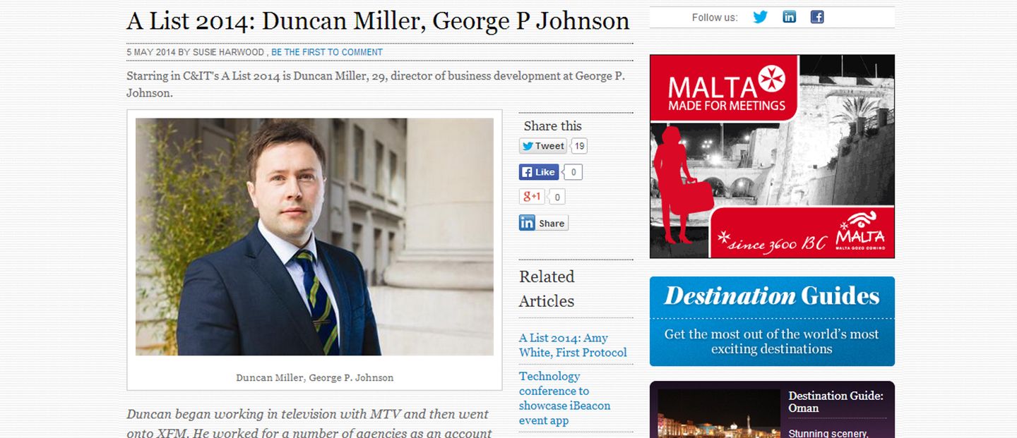 Congrats Duncan Miller! Our very own Duncan Miller has earned his spot on C&IT’s A-List! Congrats Duncan! View Article